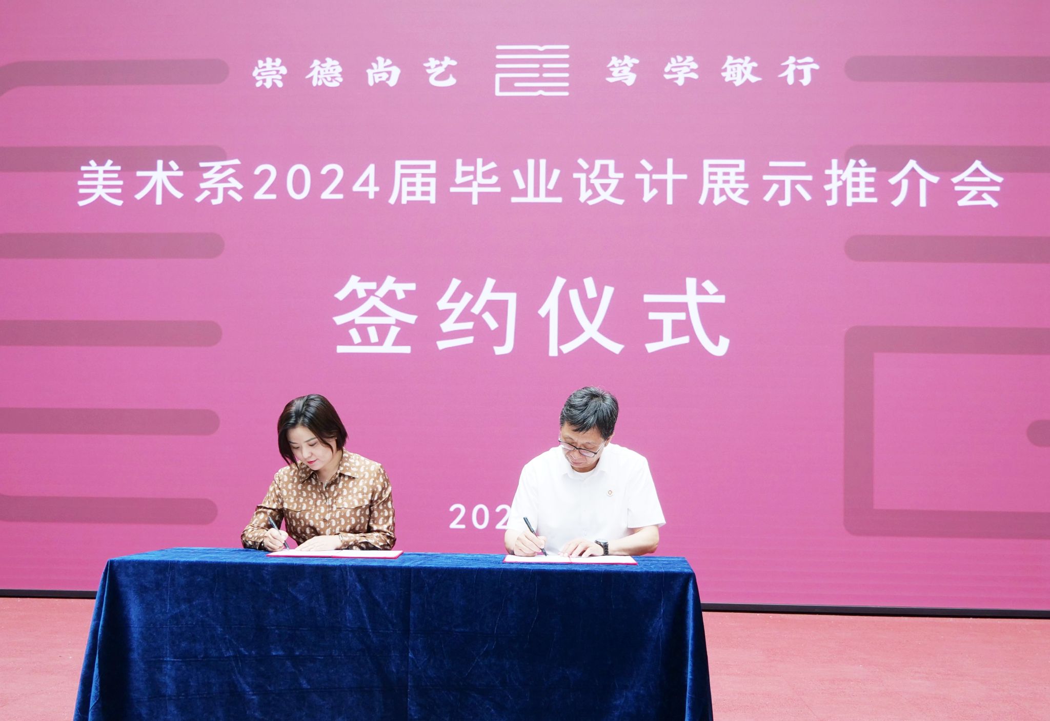 推介会上,新葡的京集团美术系主任苗勇忠与锄禾文化、长治名优产品展销馆、长治峡谷山珍食品有限公司代表签订了合作协议。