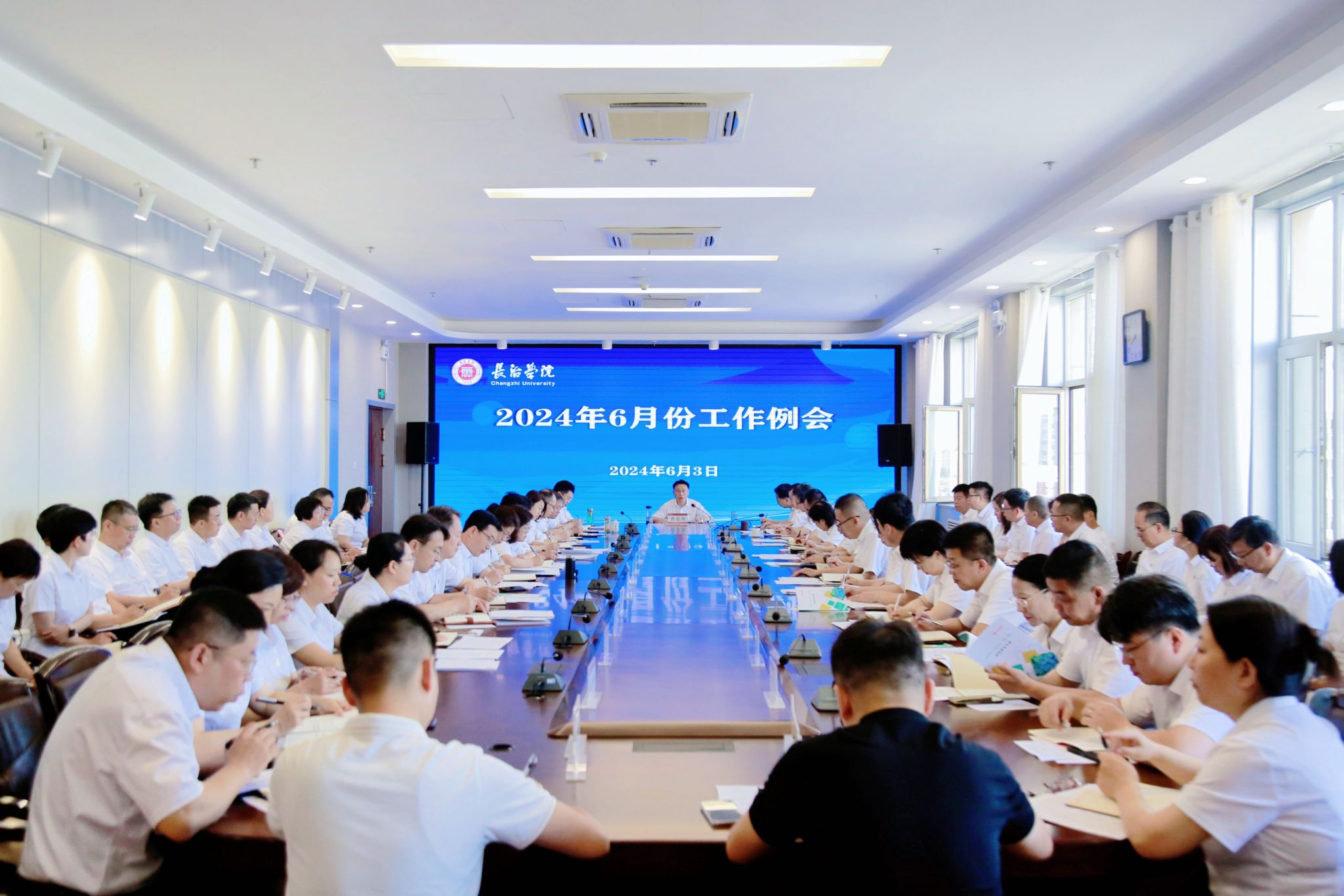会议对学校5月份高标准、高质量组织完成新校区建设项目现场推进会、“课堂教学质量提升月”专项反馈、《太行追梦人》观演、第十四届田径运动会、离退休人员春季趣味运动会及校园安全风险隐患排查整治等工作给予了充分肯定。学生工作部、人力资源部、教务部、科研部、计财部等部门负责人就六月份重点工作要点进行了汇报。会议指出,6月份正值年中和本学期末尾,是推进工作的关键阶段,要坚持以学生为本,高质量完成各项重点任务。