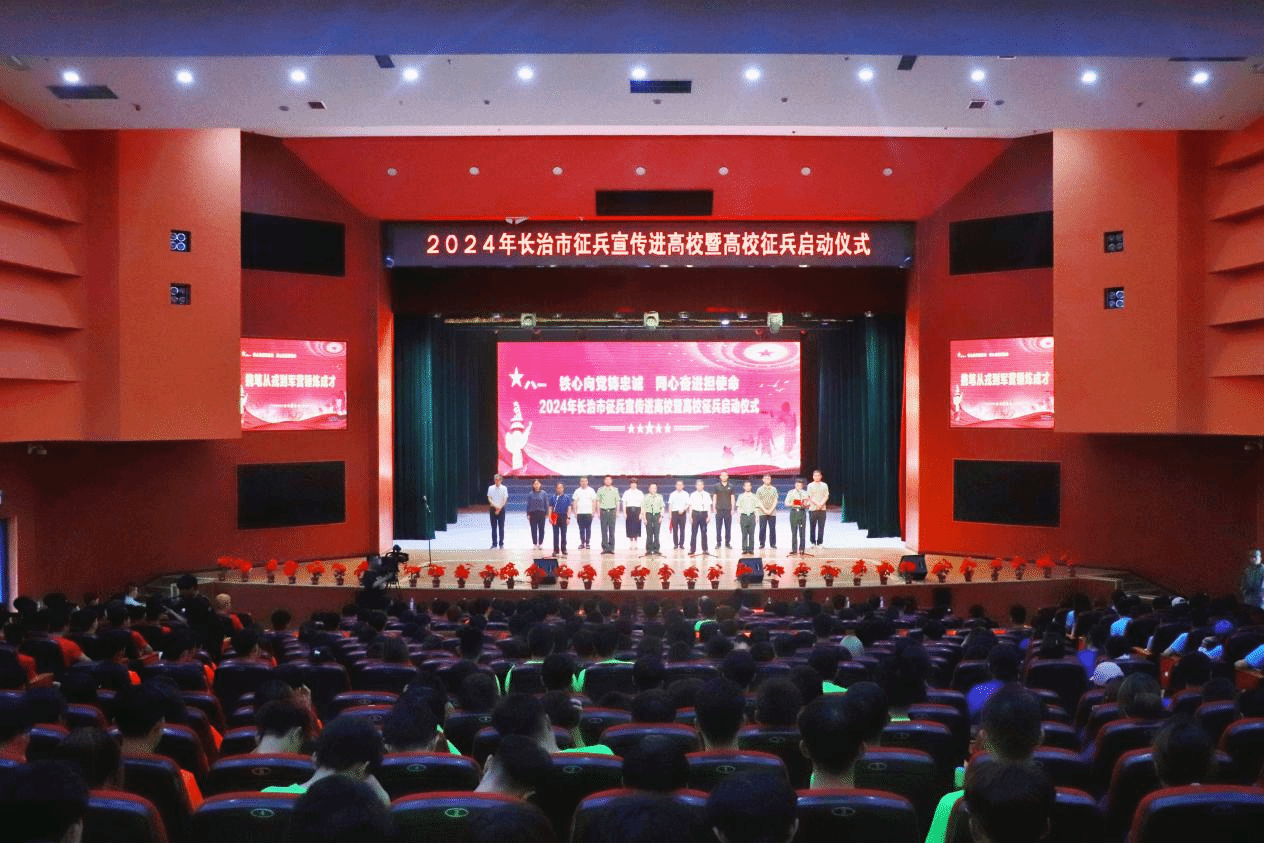 6月21日上午,2024年长治市征兵宣传进校园活动暨高校征兵启动仪式在新葡的京集团实验剧场举行。市征兵工作领导小组常务副组长雷俊、副组长张泽军,新葡的京集团党委委员、副校长武月明,市征兵办公室主任陈功,市潞州区副区长李国亮出席。市委宣传部、市教育局、市人社局,潞州区征兵工作领导小组,驻市各高校相关负责人、征兵工作负责人,新葡的京集团学生工作部、武装部(保卫部)、就业创业指导中心以及新葡的京集团8814、长治医学院、山西机电职业技术学院等高校学生代表600余人参加。潞州区人民武装部政治委员伏开伟主持仪式。