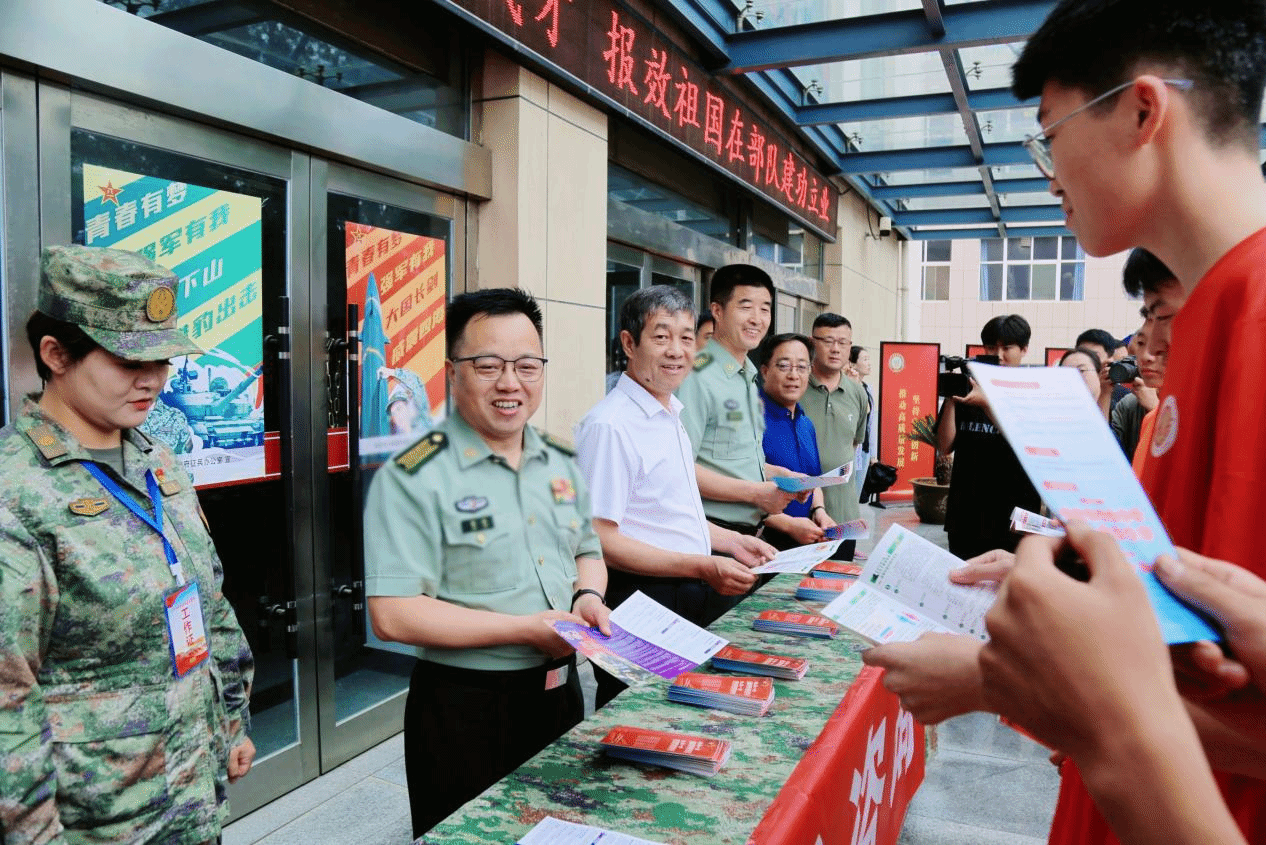 仪式举行期间,参会领导和同学们签名留念,广大学生现场积极报名。征兵工作领导小组工作人员向现场学生普及国防教育知识,并详细介绍了应征入伍相关事项,鼓励大家走进军营建功立业,用青春热血助力强国强军战略。