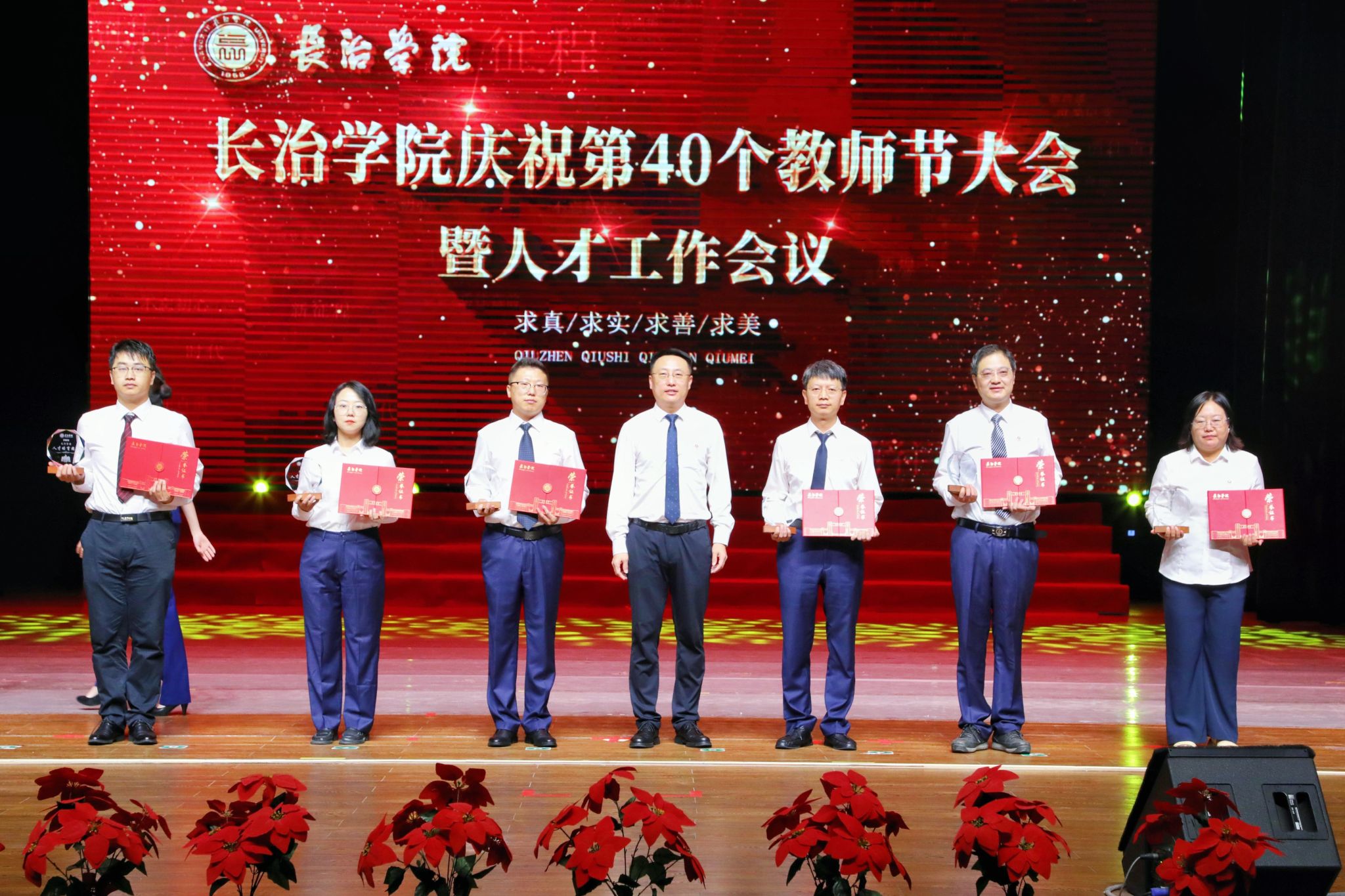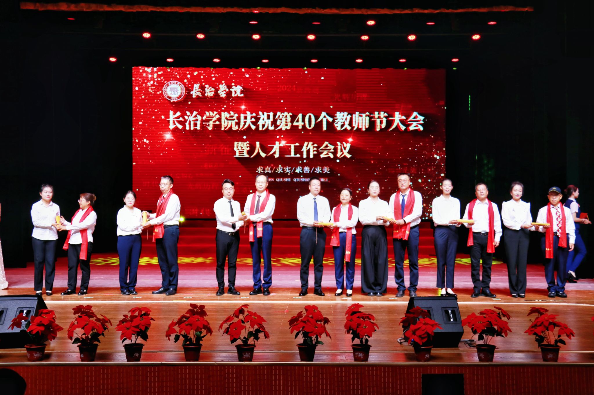 与会领导依次为师德标兵、师德先进个人、模范教师和优秀教师、优秀教育工作者、“太行学者”人才培育团队、“太行学者”骨干人才、“太行学者”攀登人才、“十佳”魅力教师、课程思政教学名师、优秀科研工作者颁奖,为从教三十年教师颁发纪念章。