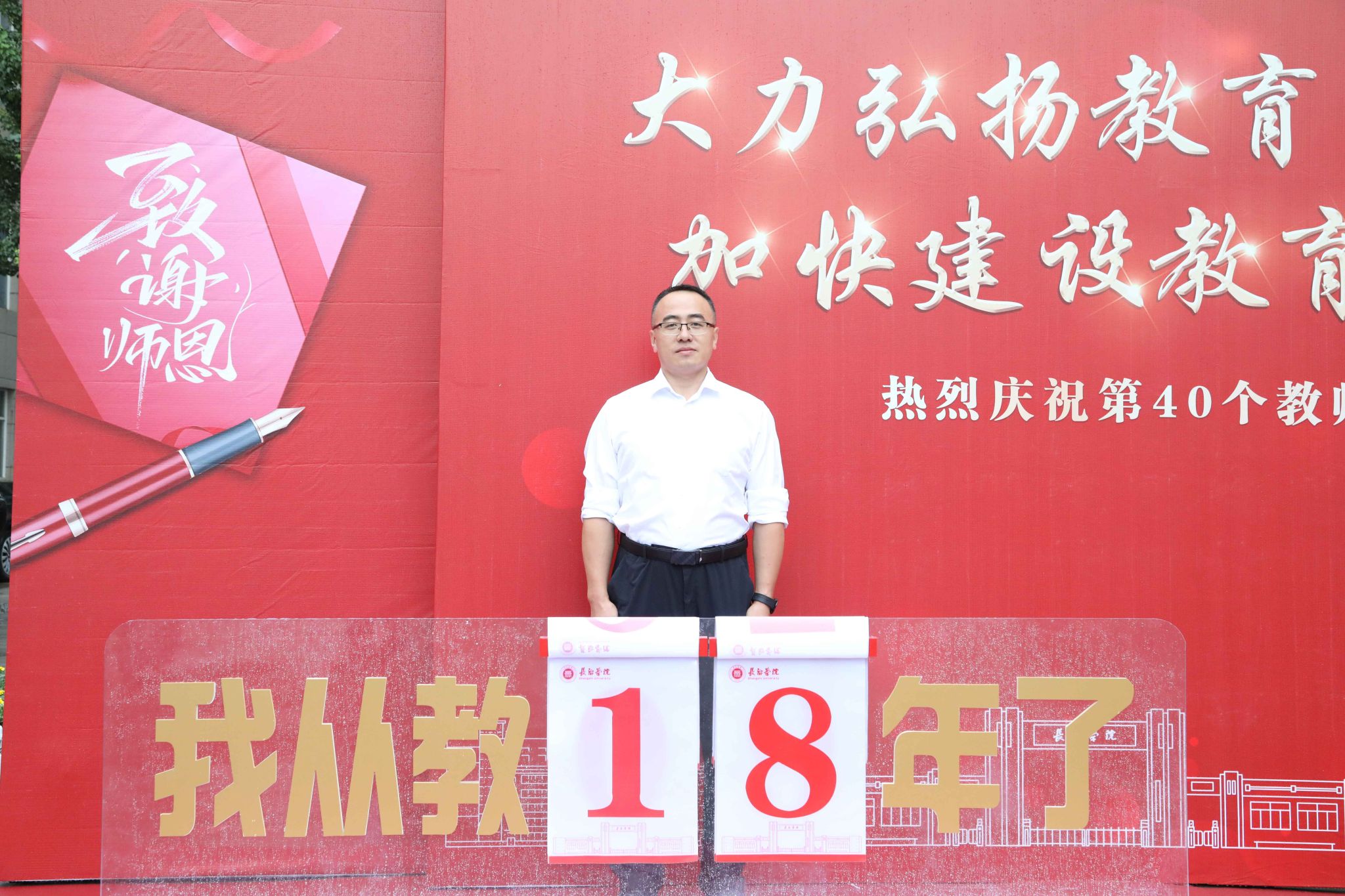 师道传承仪式环节,新教师接过老教师手中的校史接力棒,开启教书育人的职业生涯。