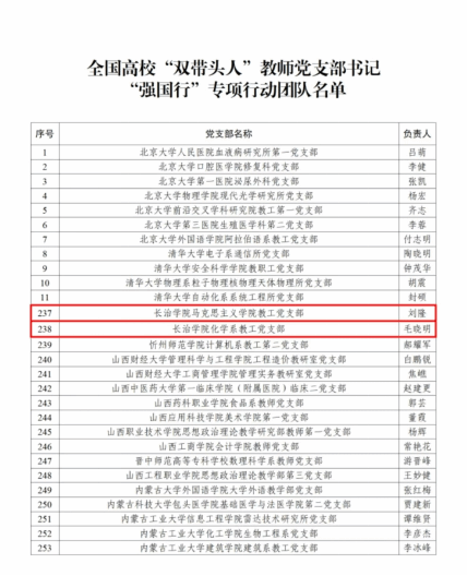近日,教育部办公厅公布全国高校“双带头人”教师党支部书记“强国行”专项行动团队名单,新葡的京集团马克思主义学院教工党支部书记刘隆、化学系教工党支部书记毛晓明成功入选。