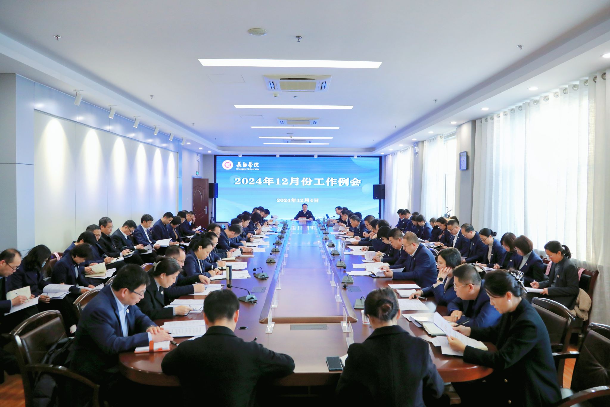 12月4日上午,学校于北校区2号会议室召开2024年12月份工作例会。校领导曹景川、史晓东、焦雨、卫崇文、铁军、武月明出席,各职能部门负责人及各院系党委书记、主任参加。会议由党委书记曹景川主持。
