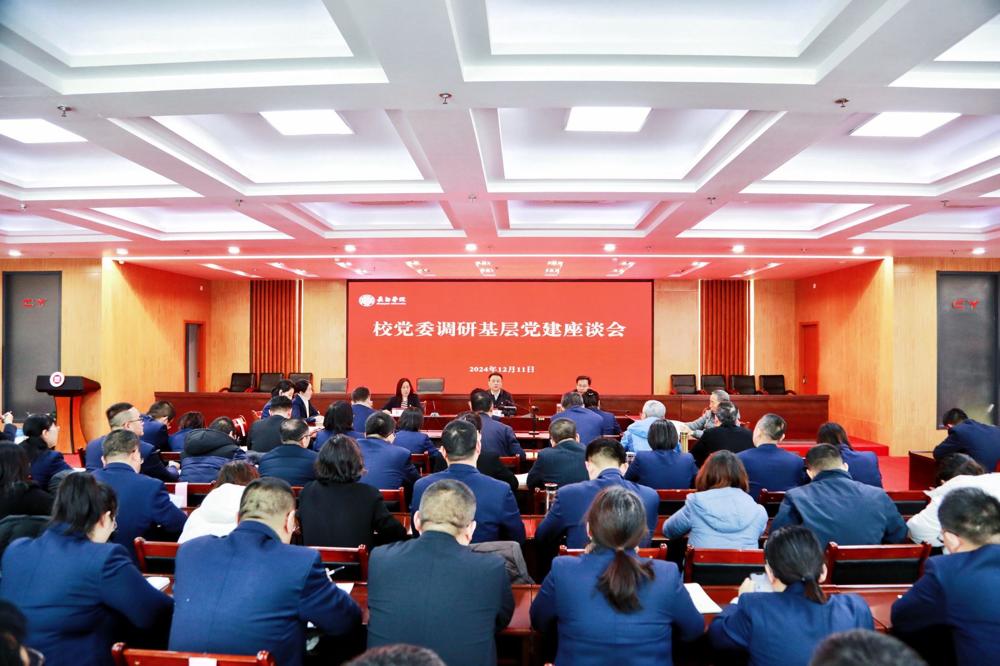 12月11日上午,校领导调研机关和离退休党建工作座谈会在1号楼1号会议室召开。党委书记曹景川,党委副书记史晓东,党委委员、纪委书记、监察专员焦雨,机关一总支、机关二总支和离退休党委全体教师党员参会。座谈会由机关一总支书记韩峰主持。