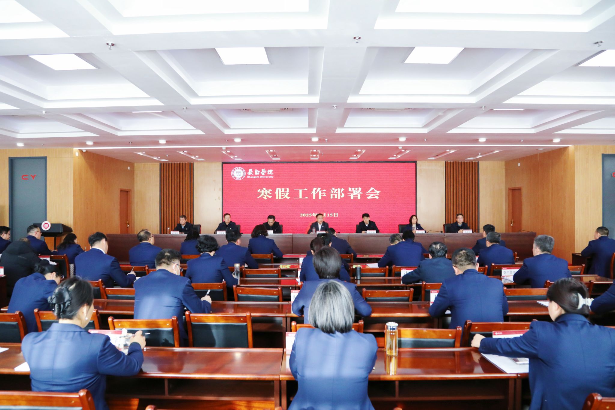 党委书记曹景川传达了省教育厅寒假安全稳定工作会议精神,就进一步做好寒假工作提出要求。要认清形势,做到思想上不放松。进一步增强责任感和紧迫感,以严实作风确保巡视整改取得实效,筑牢意识形态阵地,强化师德师风和学生思想引领,扎实推动党纪学习教育走深走实,营造风清气正的节日氛围。要筑牢底线,做到安全上不放假。要加强值班值守工作,坚决克服麻痹思想、侥幸心理,压实主体责任,做好寒假期间学生安全教育,常态化开展安全隐患排查整治,维护寒假期间校园安全稳定。要强化担当,做到责任上不松懈。各单位要提高站位、强化担当,提高标准,精准发力,利用假期抓好谋划性、接续性、慢功夫的工作,扎实推进本科教育教学审核评估、人才引进、科研成果培育、“硕单”建设、新校区建设、学科和专业规划、学生就业和社会实践等重点工作,做到寒假工作不掉线、不下线,推动学校各项工作再上新台阶。