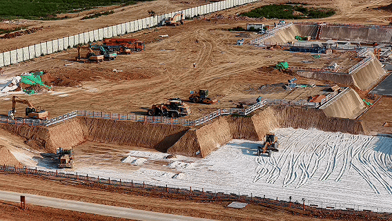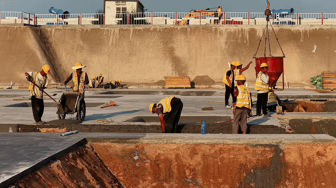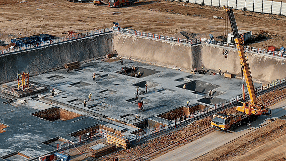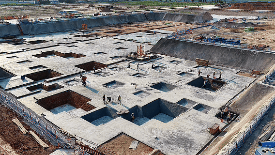 在新校区施工现场,塔吊林立、机械轰鸣、车辆穿梭,一派热火朝天的建设景象正在展开。整个施工区域安全有序,多台挖掘机、混凝土搅拌车正同步作业,工人们顶烈日、战高温,全力推进工程进度,确保按照时间节点高质量完成各阶段建设任务。