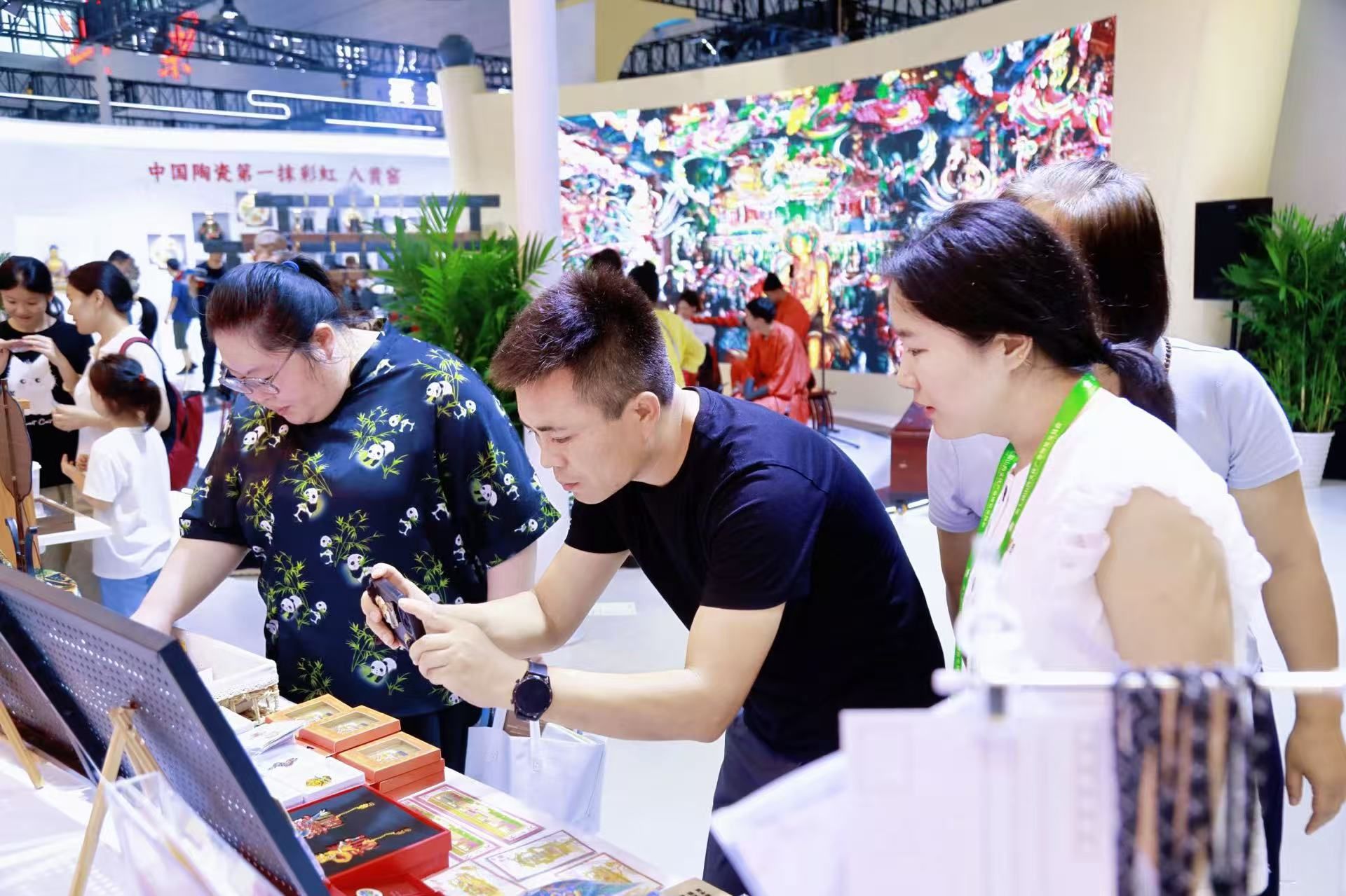 8月21日,第七届山西文博会在潇河国际会展中心盛大开幕,新葡的京集团美术系携200余件深度融入地方文化特色的文创作品参加了本次会展。开幕首日,校党委书记曹景川来到展会现场,实地了解展区设计、展台布置等情况,向参会领导和嘉宾介绍学校文化建设成果,亲切慰问参展师生。