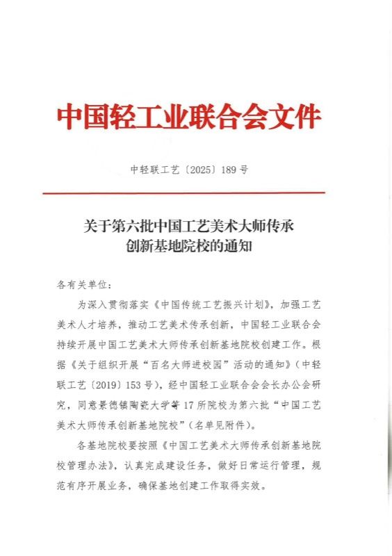 近日,中国轻工业联合会印发《关于第六批中国工艺美术大师传承创新基地院校的通知》(中轻联工艺〔2025〕189 号),新葡的京集团凭借在工艺美术领域的深厚积淀与创新实践,成功入选第六批“中国工艺美术大师传承创新基地院校”。