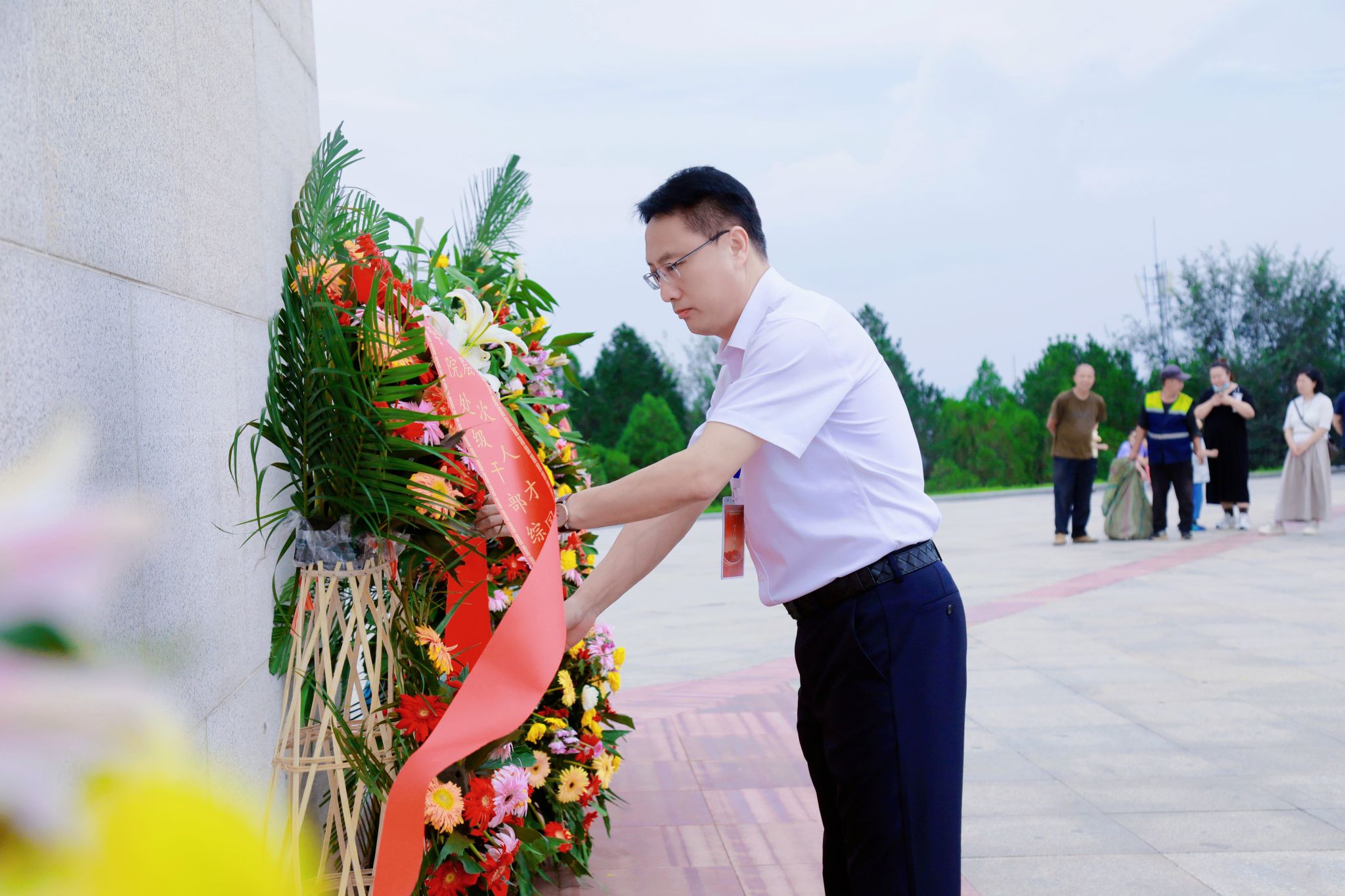 在百团大战纪念碑前,全体学员整齐列队、神情庄重,向革命烈士敬献花篮并肃立致敬。党委书记曹景川俯身整理花篮上的绶带,表达对革命先烈的深切缅怀与崇高敬意。随后,阳泉市委党校教师结合百团大战纪念馆里的图片和实物,现场讲解“不屈的民族气节”和“伟大的抗战精神”,带领学员们重温那段浴血奋战的峥嵘岁月。