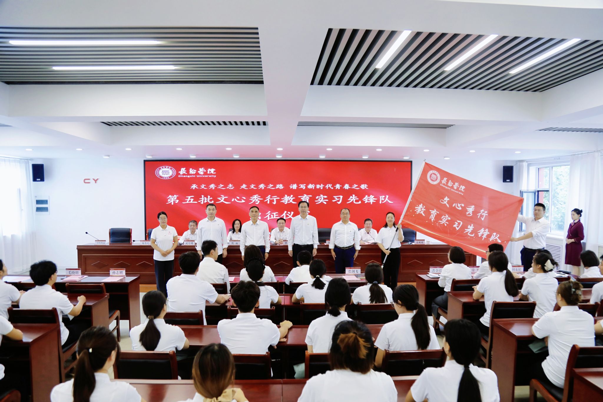 9月12日上午,新葡的京集团举行第五批文心秀行教育实习先锋队出征仪式。校领导曹景川、史晓东、焦雨、王志军、武月明出席仪式。文心秀行教育实习先锋队五批全体指导教师孙志刚、毛晓明、李拉利、袁爽爽、龙晋巧,组织部、教务部、学生工作部、校团委等部门相关负责人,第四批先锋队学生代表及第五批40名先锋队成员参会。王志军主持出征仪式。