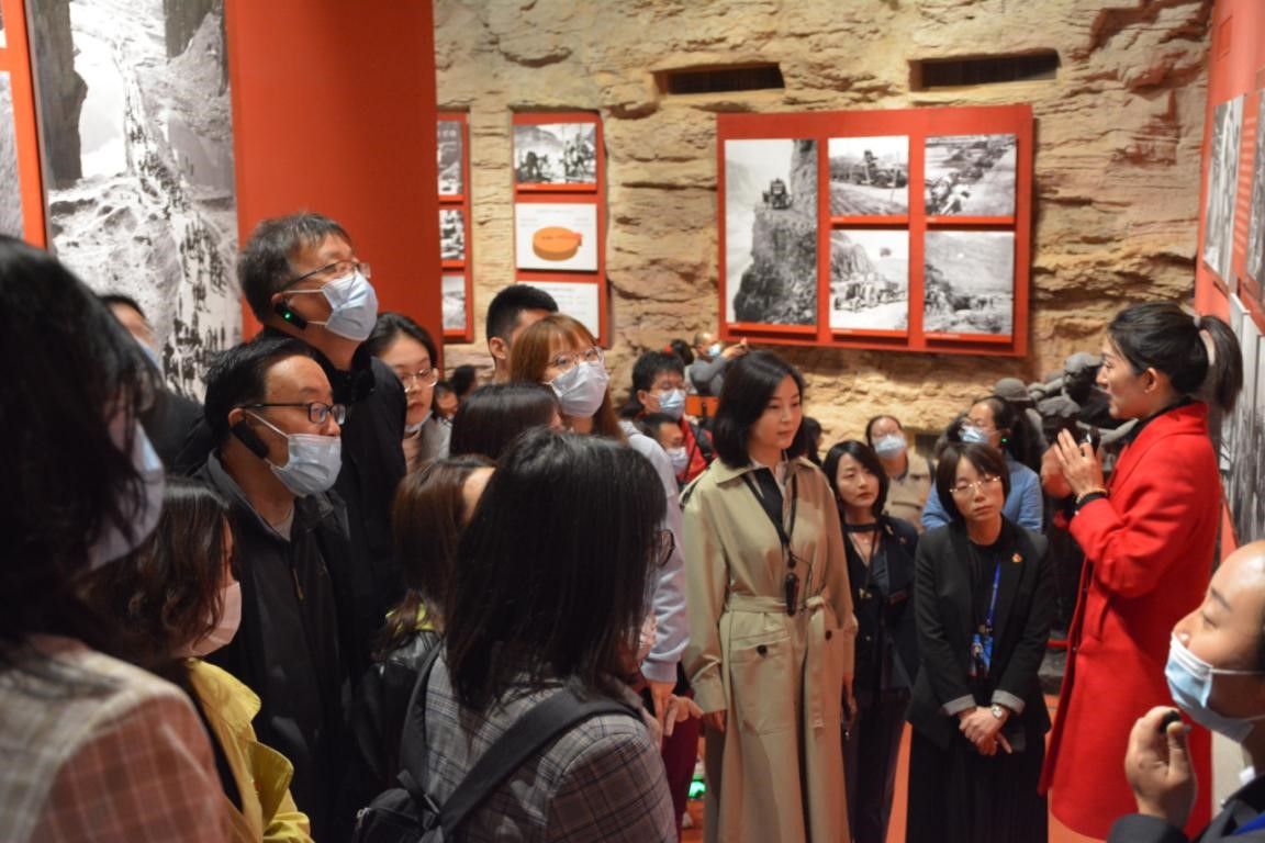 此次参观学习的第一站是红旗渠。20世纪60年代,为结束河南林县十年九旱的历史,10万英雄儿女在万仞壁立、千峰如削的太行山上建成了全长1500公里的“人工天河”——红旗渠,国内被称为“中国水长城”,国际上被誉为“世界第八大奇迹”。党员教师们在讲解员的带领下先后参观了纪念馆、分水闸和青年洞,切身学习感受“自力更生、艰苦创业、团结协作、无私奉献”的红旗渠精神。历久弥新的红旗渠精神镌刻在每一块太行山石上,融入每一滴红旗渠水中。这面精神旗帜,汇聚起强大的正能量,激励着全系党员教师。