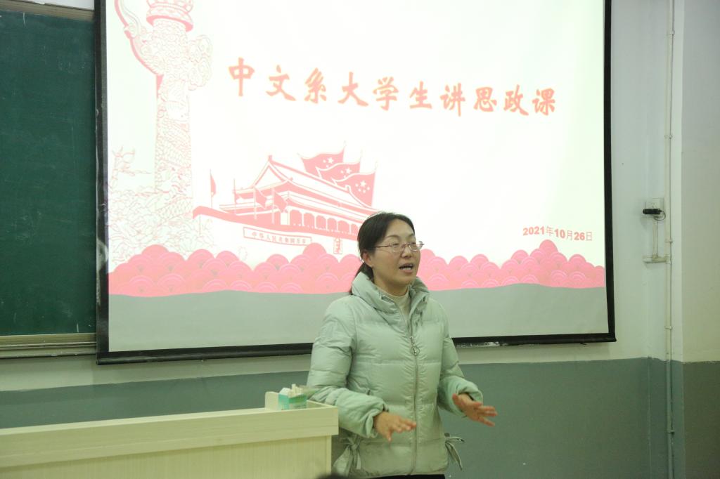为深入学习贯彻习近平总书记“七一”重要讲话精神,推动党史学习教育走深走实,落实立德树人根本任务,教育引导广大青年学生用科学理论武装头脑,做到学史明理、学史增信、学史崇德、学史力行,凝聚迈进新征程的智慧和力量 ,10月26日下午,中文系在逸夫教学楼309、311教室进行第二届“大学生讲思政课”公开课系级选拔赛。中文系党政领导、辅导员、参赛选手和学生代表参加活动。
