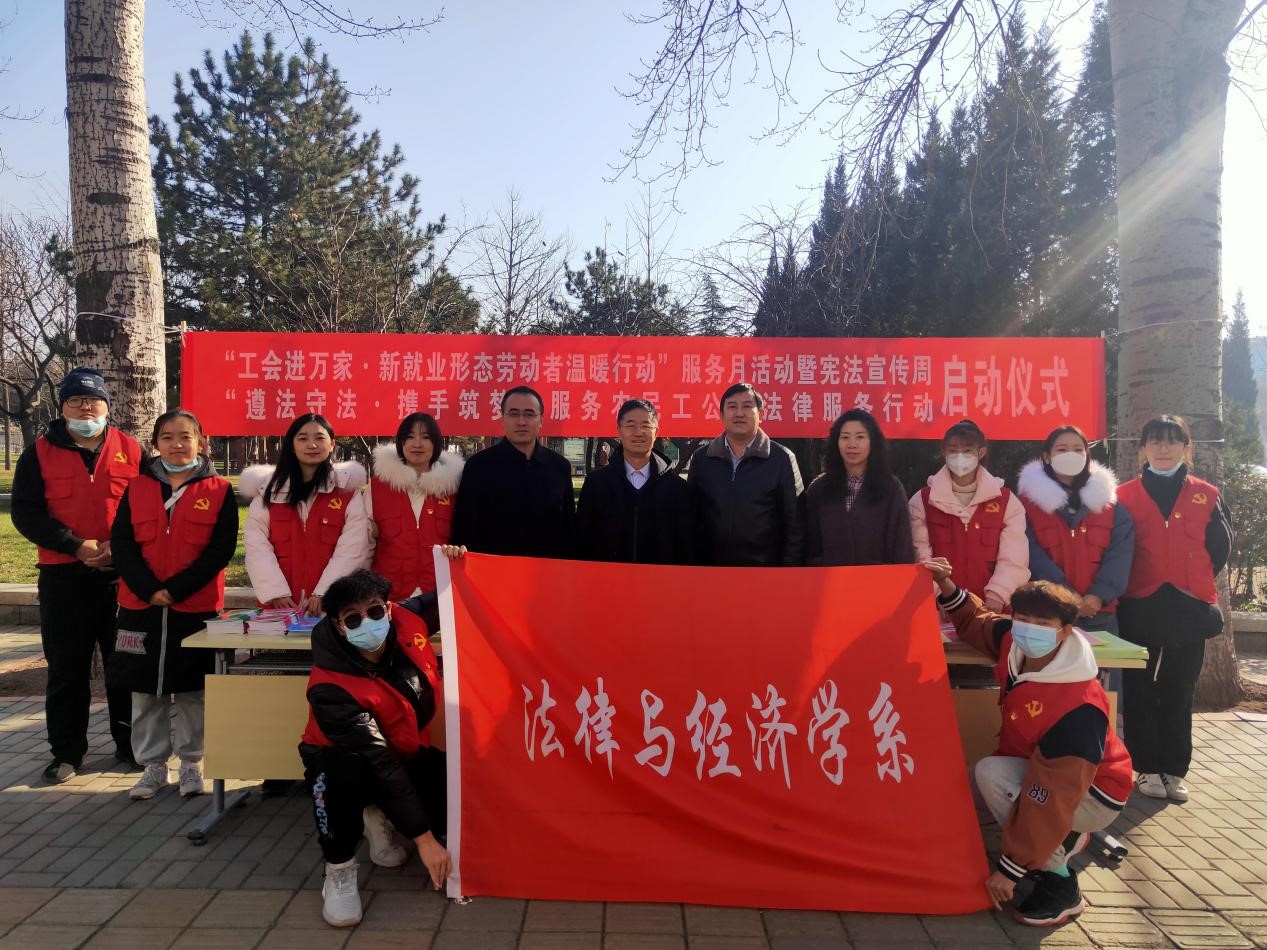 11月26日,法律与经济学系法律服务队与潞州区总工会联合开展了“遵法守法·携手筑梦”服务农民工公益法律服务行动启动仪式。长治市总工会副主席闫培俊,新葡的京集团8814工会主席李俊清,法律与经济学系党委书记段浩,法律与经济学系青年教师代表和学生代表参加活动。