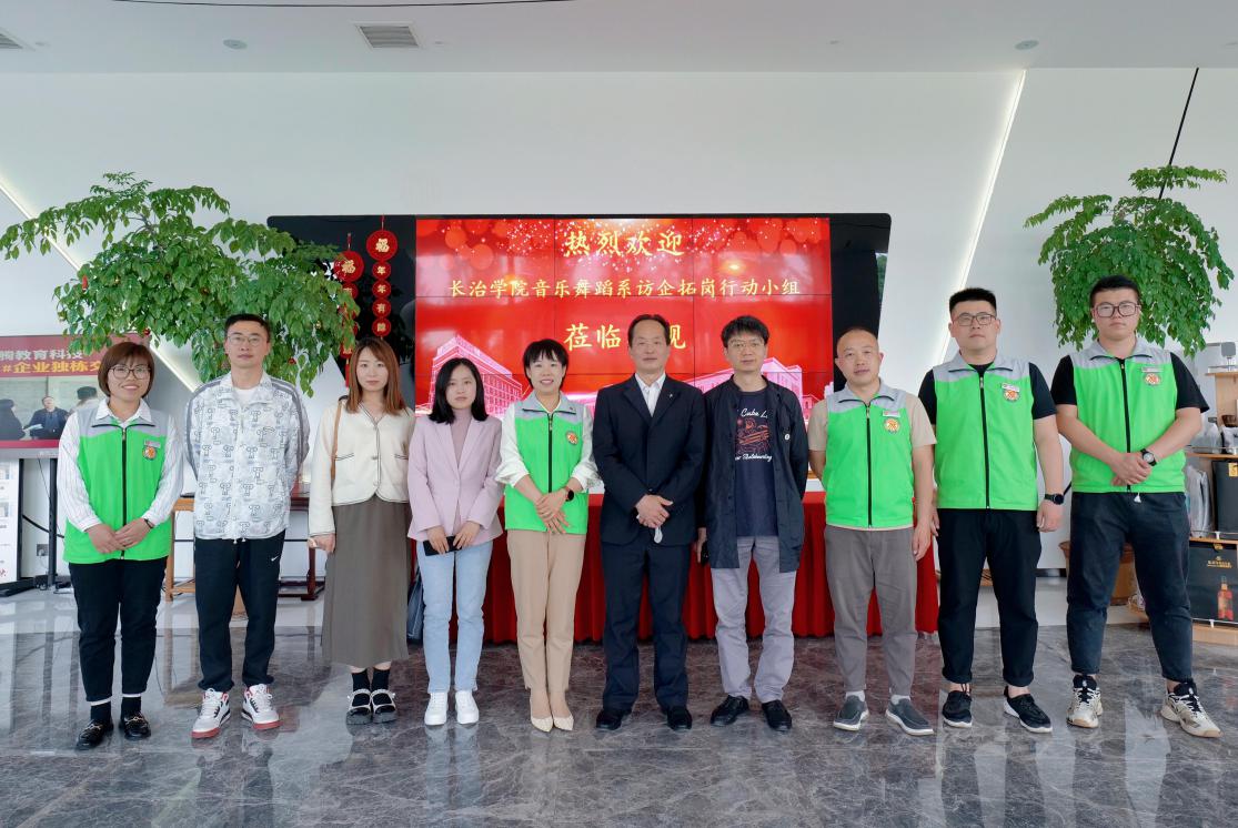赵晋耀指出,今年就业形势严峻,高校毕业生首次突破了一千万,规模创历史新高,此行既是调研学习,也希望可以与企业建立深层次合作关系,共同推动大学生就业工作。张军介绍了音乐舞蹈系的发展概况、专业建设、学生情况及毕业生就业形势等,希望企业可以为应届毕业生开展专题就业讲座、专项招聘活动,为在校大学生提供创业指导、平台和课程,实现校企之间的资源共享。