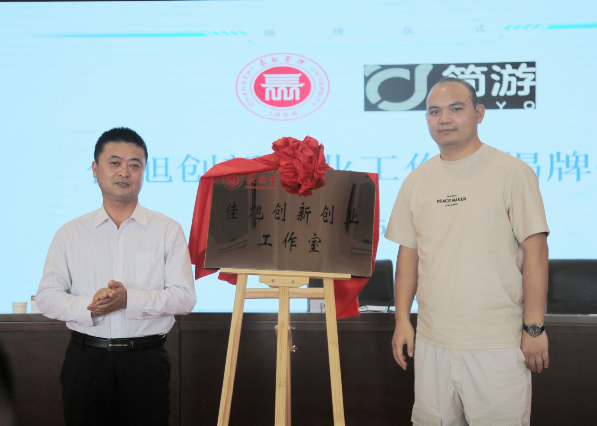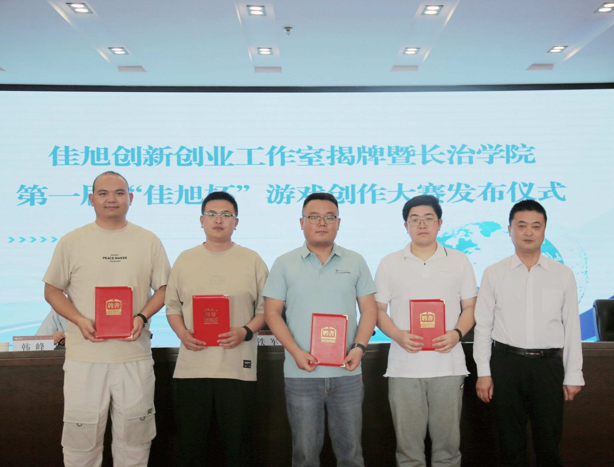 铁军为工作室揭牌,并为张佳旭、韩孟、汲怀鑫、赵彦皓现场颁发了就业创业导师聘书。