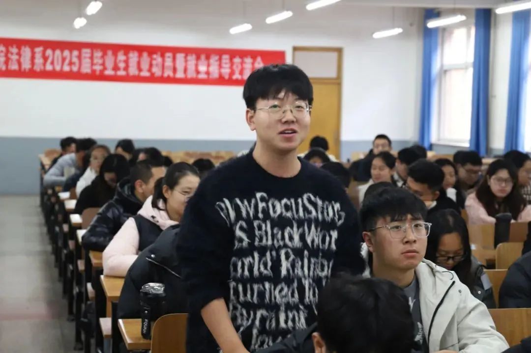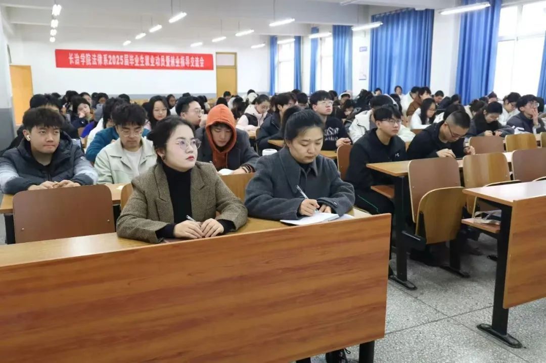 法律系主任段浩在动员讲话中表示,就业工作是关系学生成长、学校发展、就业民生的一项重要工作,毕业生要树立职业自信、学科信心、专业信心,做到有目标、有方向、有计划、有行动,对申报岗位不盲目、不从众、不单打独斗,要主动出击,积极拓宽就业方向和路径。全系上下要积极开展系列就业促进行动,聚焦当前促就业工作重点难点,精准拓展岗位,优化指导服务,引导毕业生主动求职,帮助更多毕业生落实就业去向,全力促进我系毕业生高质量充分就业。