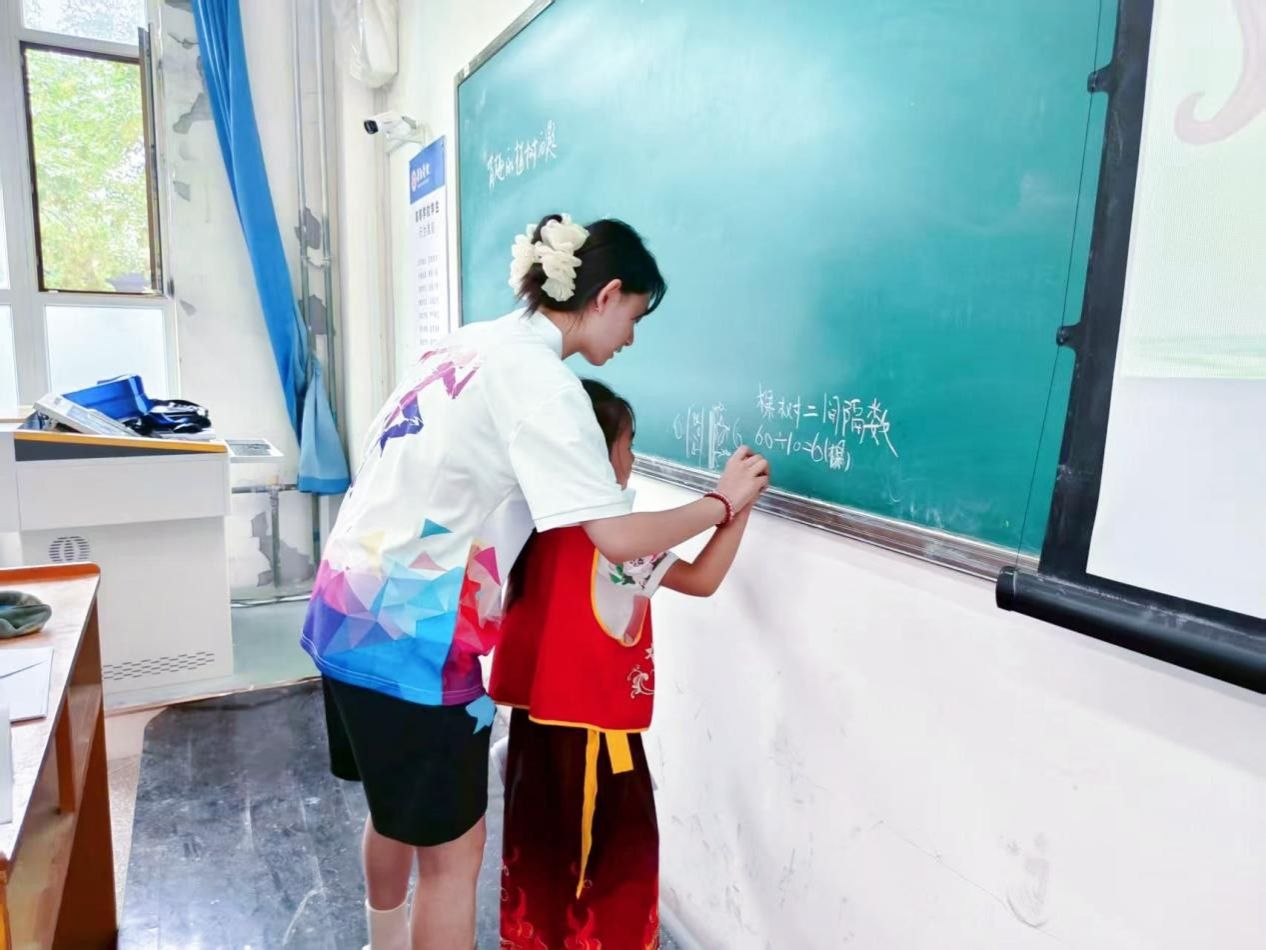 为延伸服务半径,数学系教师党员还带领16名大学生志愿者奔赴平顺县,与当地党群服务驿站及社区携手,为暑期在家的孩子们提供“伴学”服务。活动不仅涵盖课业辅导,还组织了丰富的趣味活动,陪伴县区放暑假的孩子们度过了一个充实而有意义的假期。